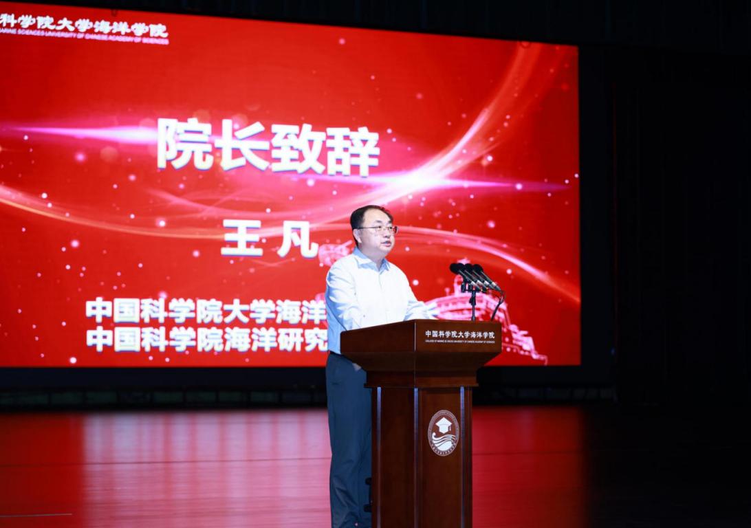 王凡在开学典礼上致辞,他向长期关心和支持学院发展的各级领导、共建单位、全体教职员工致以感谢,并向369名新同学表示欢迎。他勉励新生们心怀“国之大者”,在建设海洋强国的征程中坚定理想信念,勇于攀登科学高峰,打牢学术与实践根基,同时锤炼品格,倡导诚信合作,在挑战中收获成长。