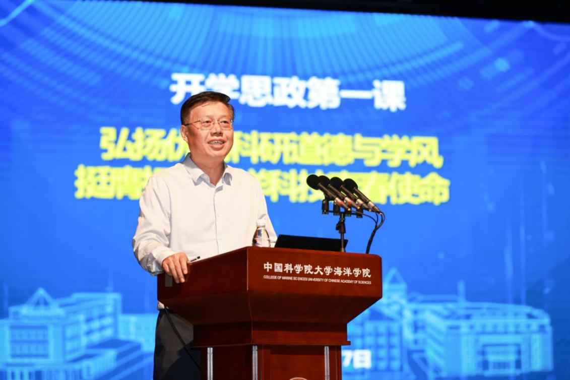 典礼仪式后,王凡为新生讲授“开学第一课”,回顾了中国科学院与国科大在海洋科学领域的发展历程、重大贡献以及未来在海洋科技战略中的位置与使命。王辉为新生讲授“思政第一课”,强调学术道德、科研伦理和时代使命,引导新生坚定理想信念,严于律己、勇于创新。