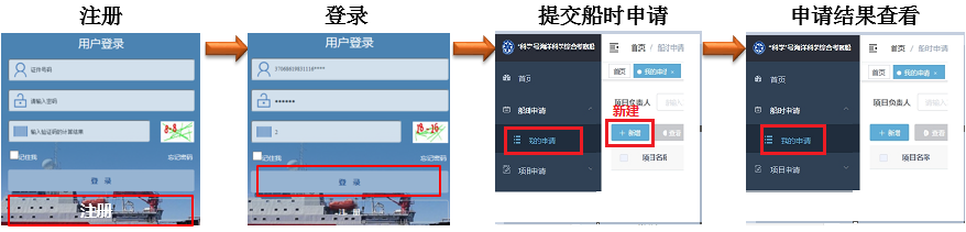 附件1:“科学”号线上运行管理平台船时申请步骤